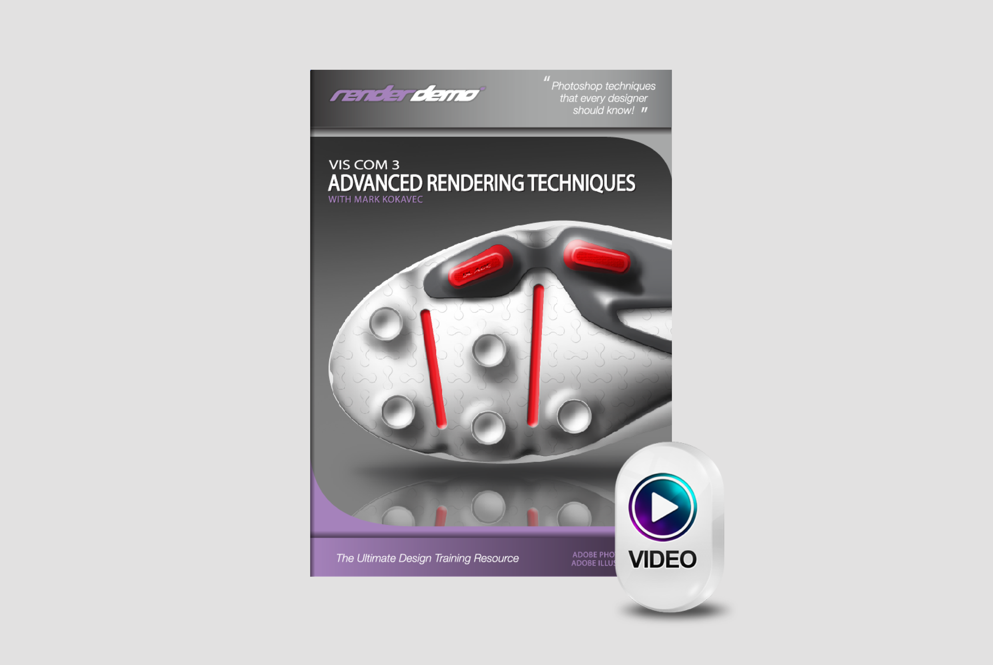 In Part TWO, We use vector based line art from Illustrator and proceed to render a shoe outsole in Photoshop. If your looking to add some realism to your design concepts, these techniques will surely help.