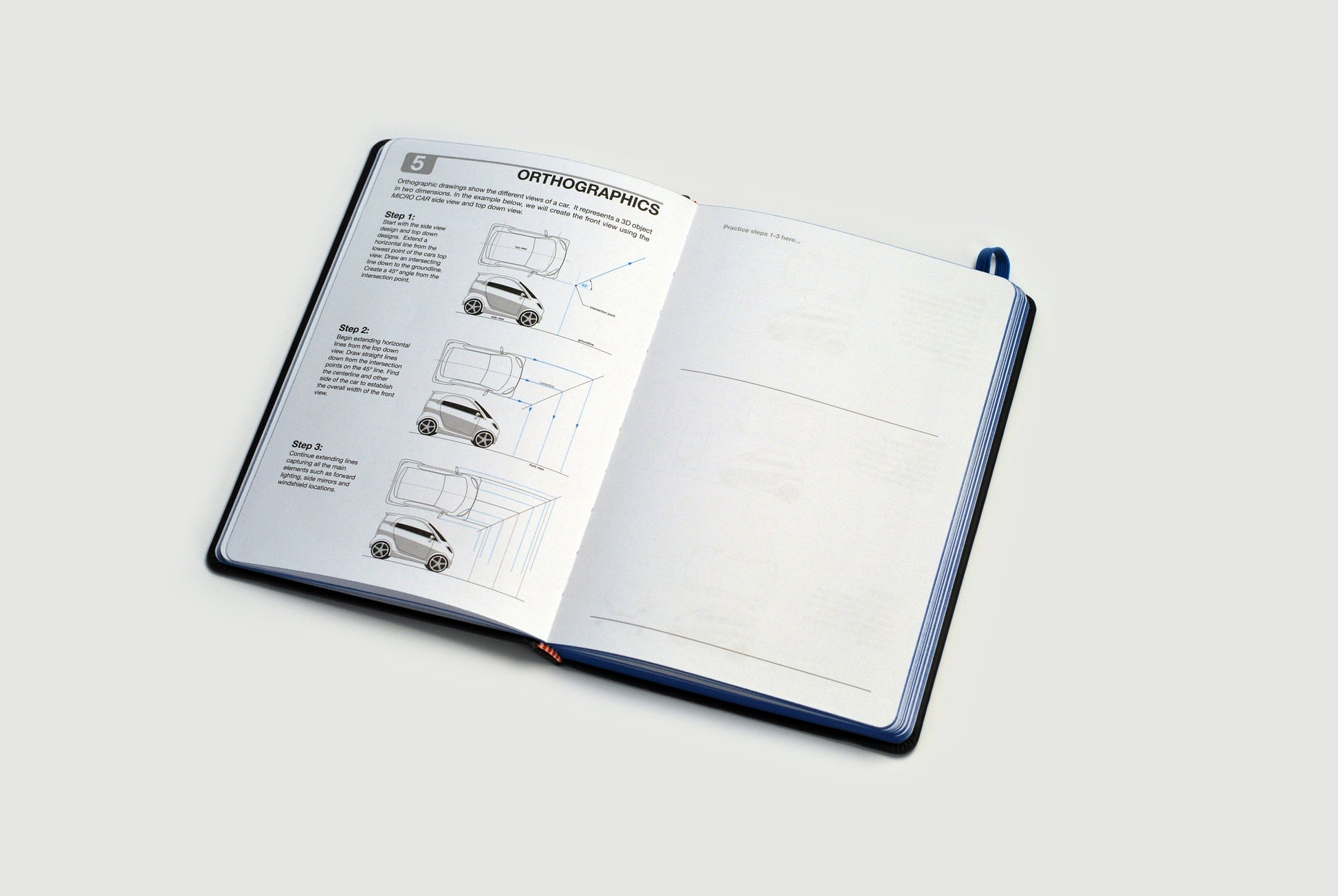 We've designed the How to Draw CARS sketchbook using an easy to follow along "phase-out" system that begins with lots of guidelines and as you progress through the sketchbook, the guidelines are simplified, reducing your dependency on those guidelines. We've also included some commonly used industry reference material along with 100+ sketch templates.