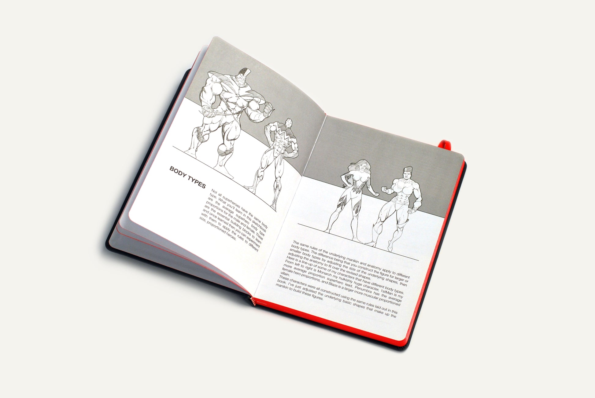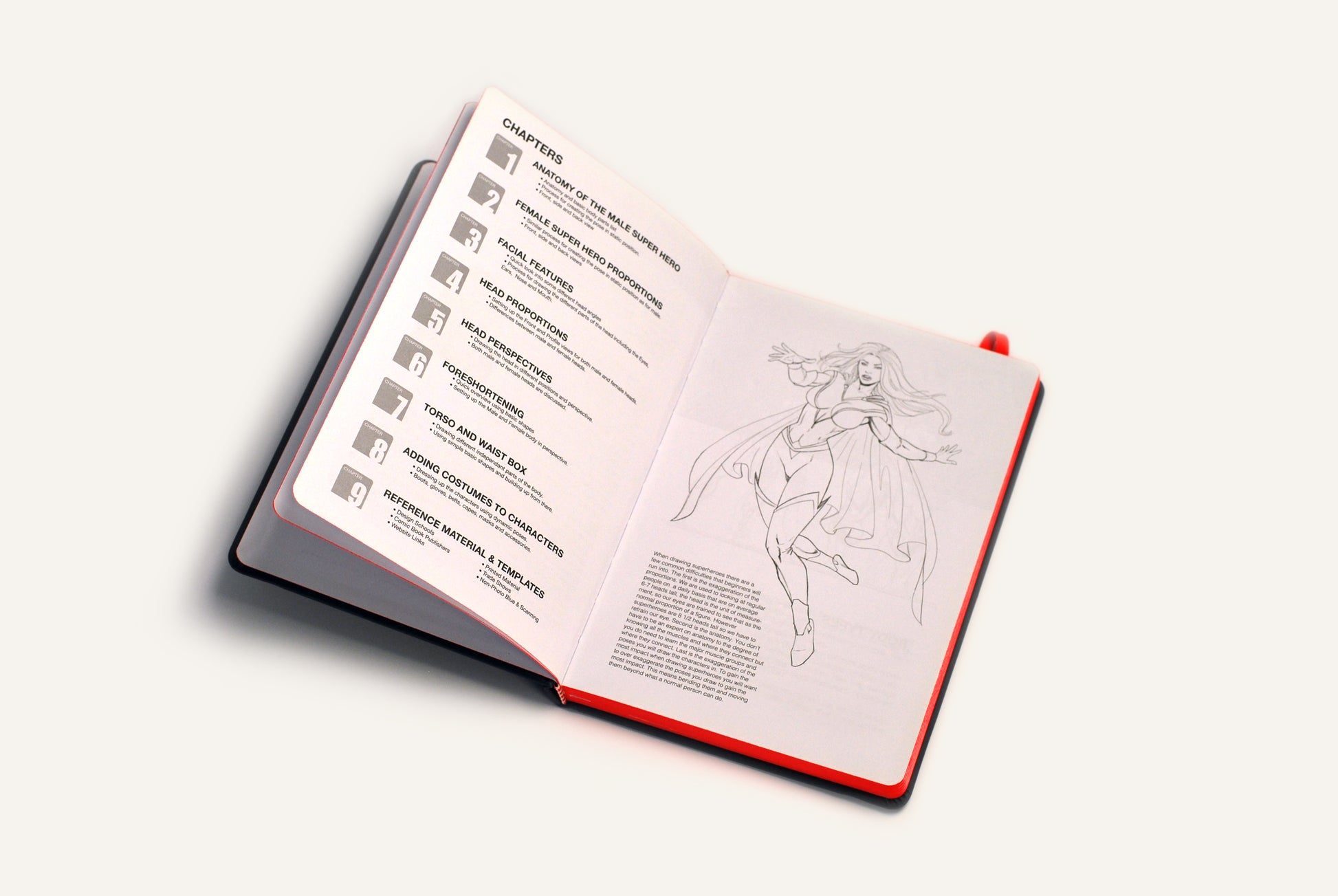 Our GOAL is that as you progress through the how to draw comics sketchbook, you will begin to visualize the shapes and ultimately be able to draw without the need of any guidelines. We’ve also included some commonly used industry reference materials along with over 100 sketch templates into an easy to handle hard cover sketchbook.